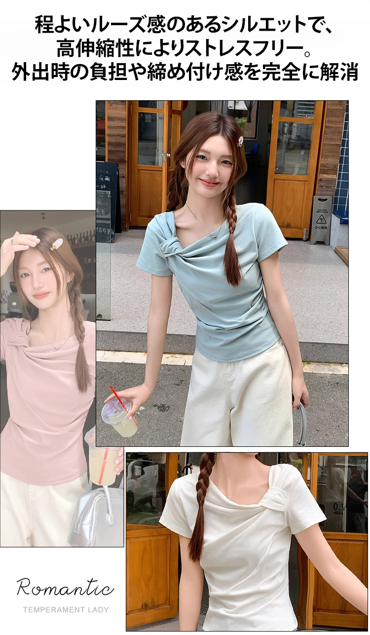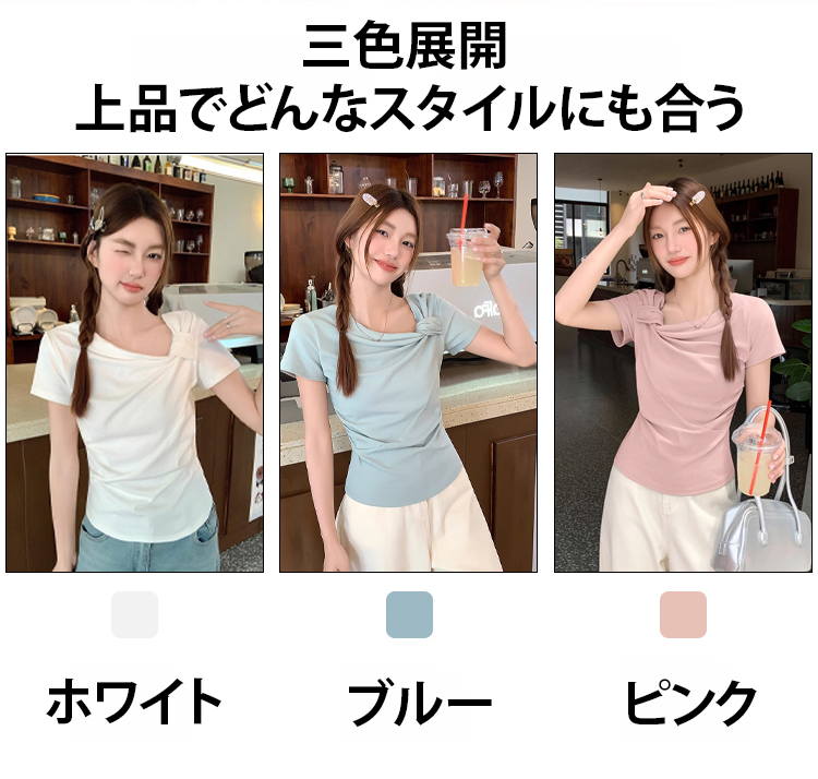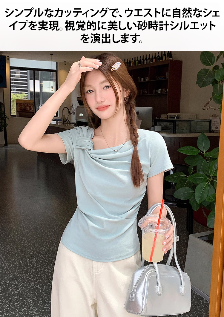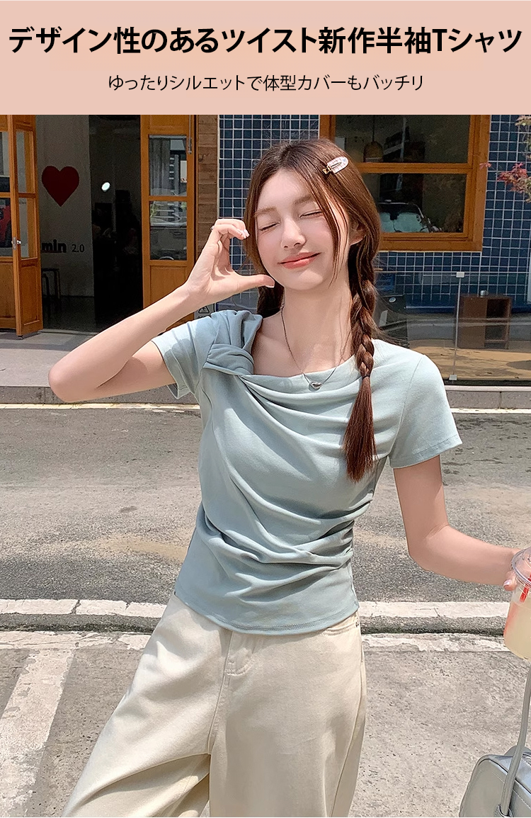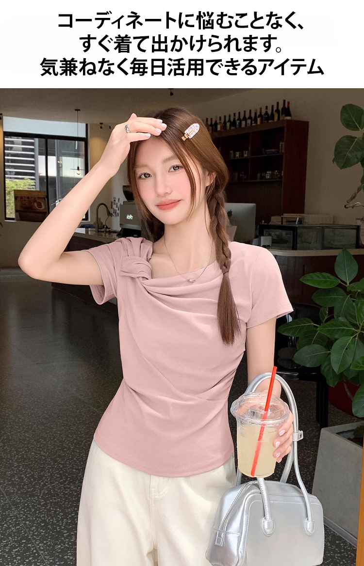 ツイストデザインレディース半袖Tシャツ