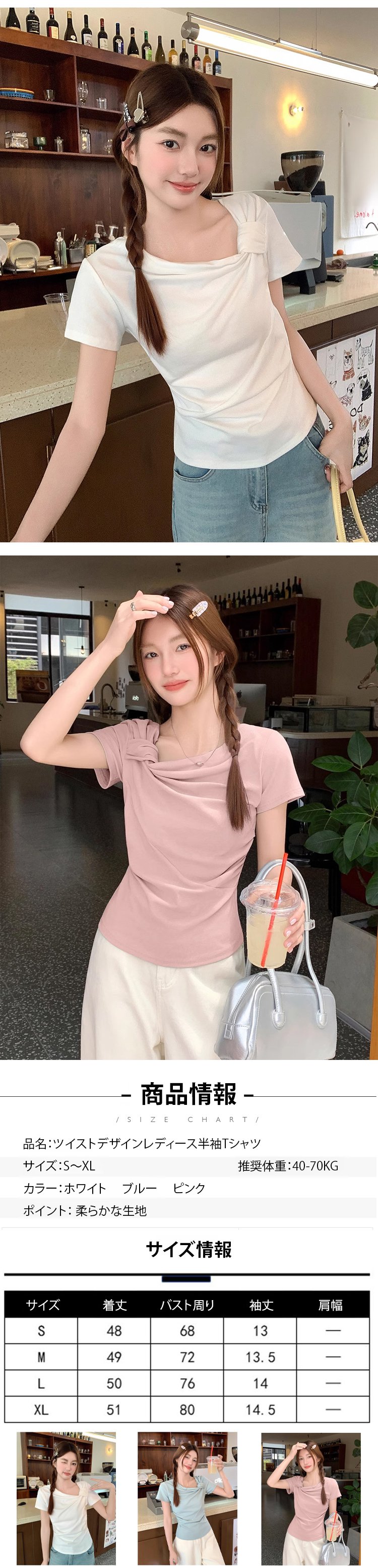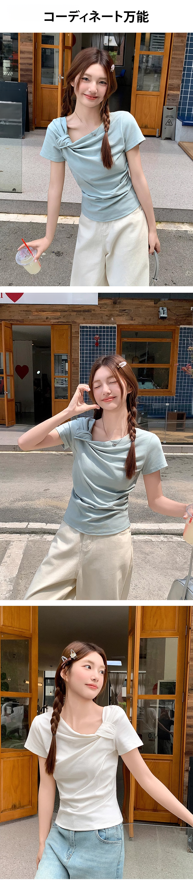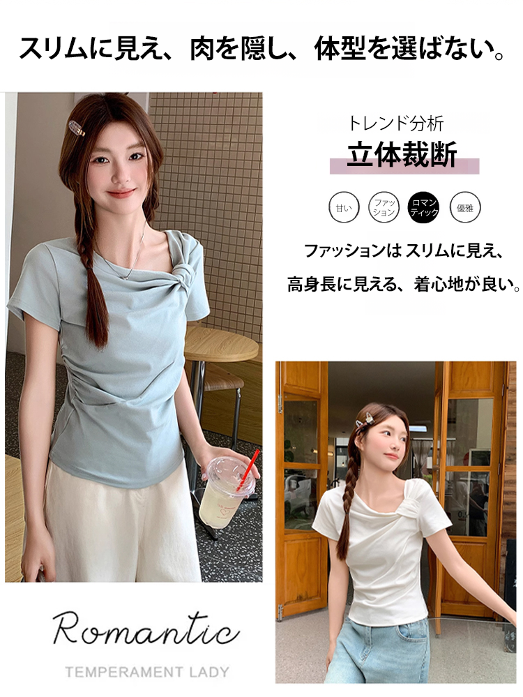ツイストデザインレディース半袖Tシャツ